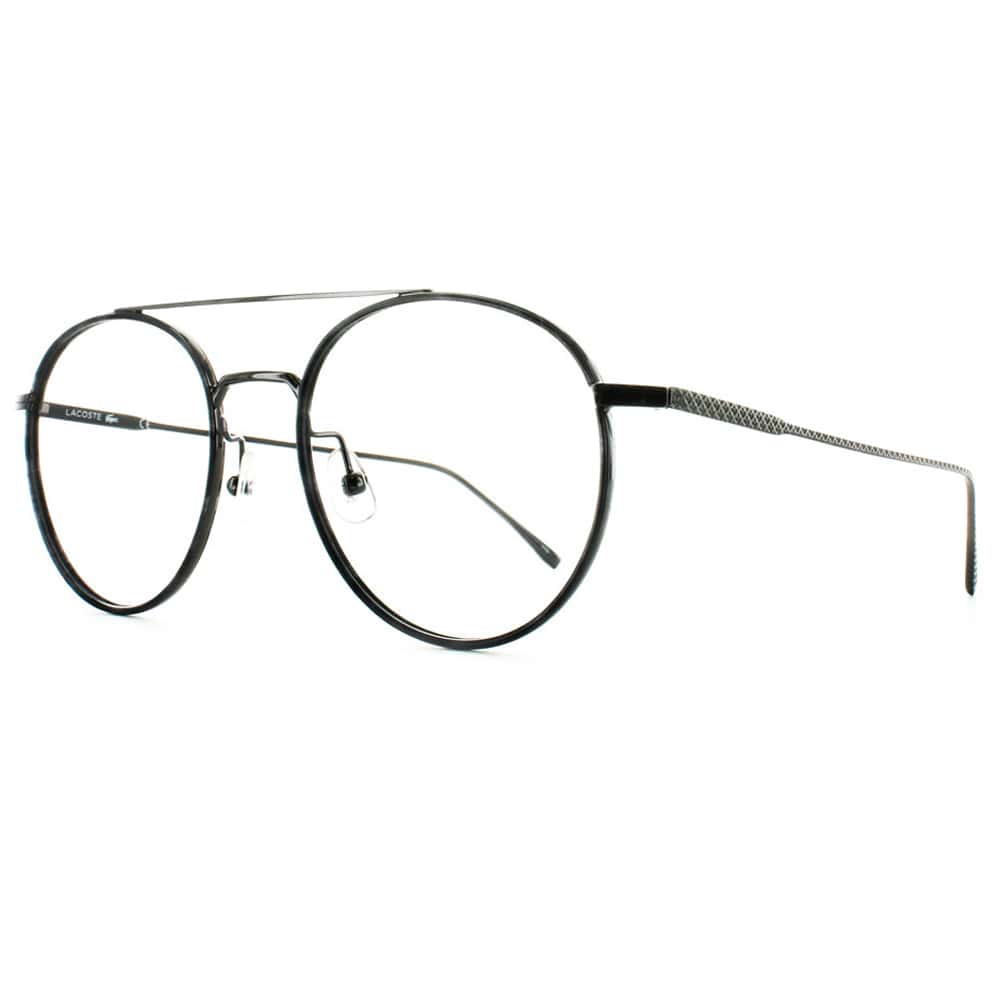 Les Lunettes Lacoste L2250 Gun Gris sont des lunettes pantos avec un double pont en métal et insert en acétate fris de la collection Lacoste.