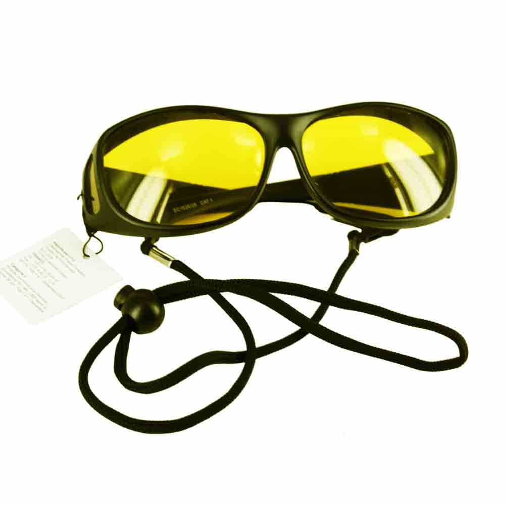 Les sur-lunettes de soleil EC1626 sont des sur lunettes de protection solaires issues de la collection Eclipse. Ces sur-lunettes très couvrantes sont équipées de verres solaires jaune et polarisés de catégorie 1, elles vous préservent des UV et de l'éblouissement. Vous pouvez les porter seules ou sur vos lunettes habituelles. Les sur-lunettes Eclipse sont très légères et très confortables, elles offrent une bonne protection tout en apportant un maximum de luminosité grâce à leurs lucarnes latérales, lunettes parfaites pour la conduite par temps peu lumineux. Les sur-lunettes de soleil Eclipse sont parfaites pour protéger les yeux des opérés de la cataracte, des pécheurs ...